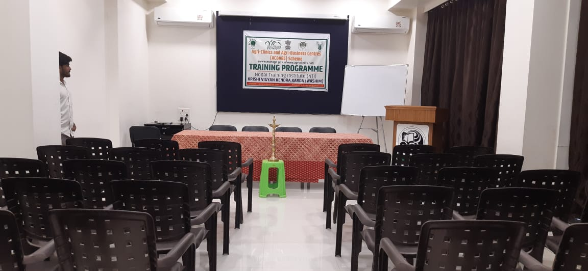 Training Hall No. 1 at Krishi Vigyan Kendra (KVK), Washim is a well-designed, modern, and air-conditioned training facility ideally suited for medium-sized training programmes, workshops, and technical sessions. It provides a focused and comfortable environment for effective knowledge transfer to farmers, rural youth, extension personnel, and stakeholders from various departments.